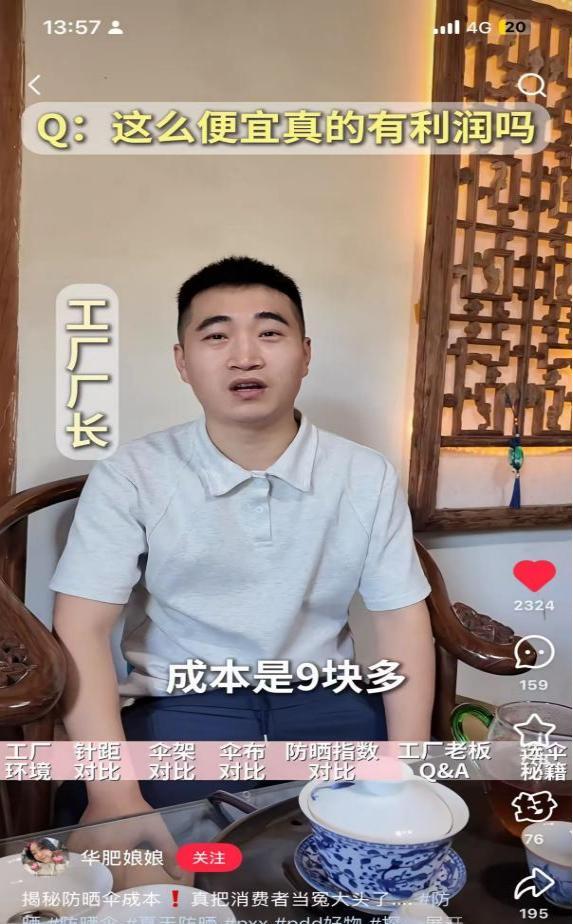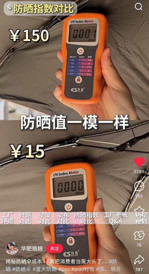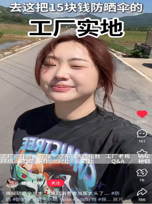 而一位行动力很强的小红书博主“华肥娘娘”,直接奔向位于江西弋阳产业带生产15元防晒伞的工厂,进行实地考察。