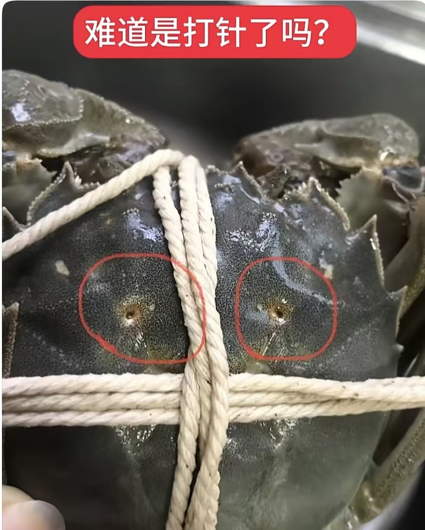 疑问三:蟹身“针眼”从何而来?打了针的螃蟹能吃吗?——自然损伤为主,合规蟹可放心食用