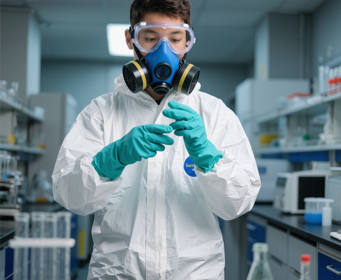 (二)检查个人防护装备,确保 “防护有效”基础装备核验:检查个人实验服是否洁净、无破损(若沾染过化学品需提前清洗或更换);护目镜需无划痕、密封性良好;防护手套(根据实验需求准备耐酸碱、防割、防有机溶剂等不同类型)需检查是否有漏洞、过期情况,避免因装备失效引发伤害。