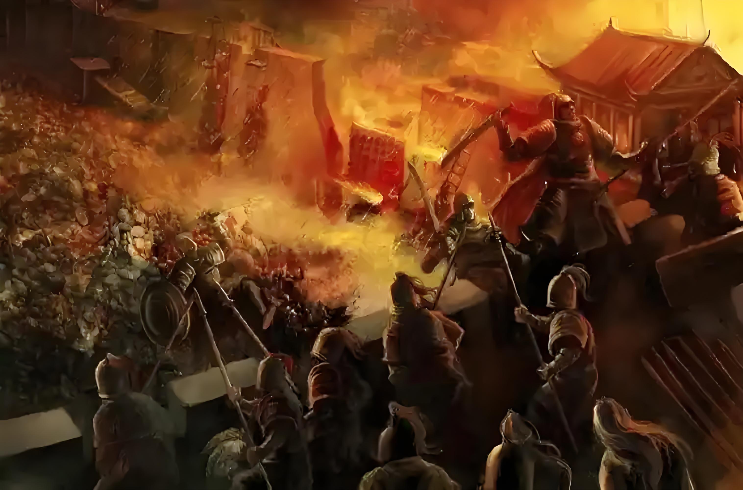 这一幕让人不禁想起了当年李处耘的英勇之举。赵凤的行为不仅制止了部分士兵的暴行,也暂时平息了城中的混乱局面。