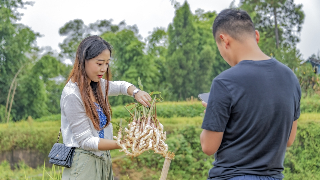 上午,网络人士一行来到罗盘山生姜基地,了解罗盘山生姜种植和销售情况,与当地老百姓一起体验罗盘山生姜挖、剪、洗、打包的全过程。网络人士们用相机、手机、无人机拍摄素材,用图片、短视频或直播等方式记录罗盘山生姜重获新生的过程以及罗盘山良好的生态环境,推荐罗盘山生姜和新胜镇山水美景。