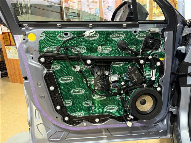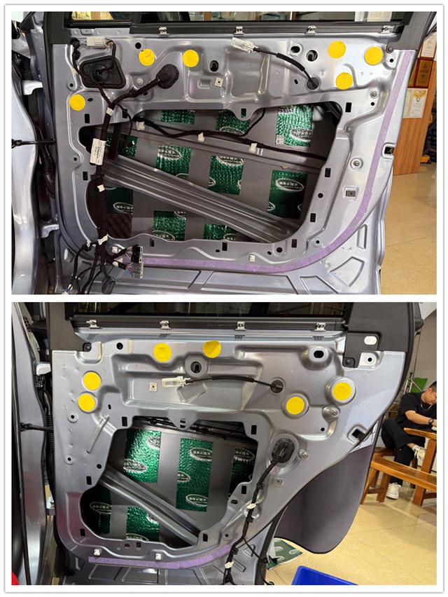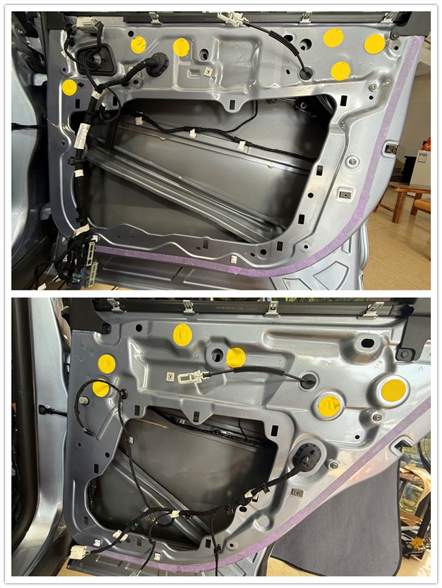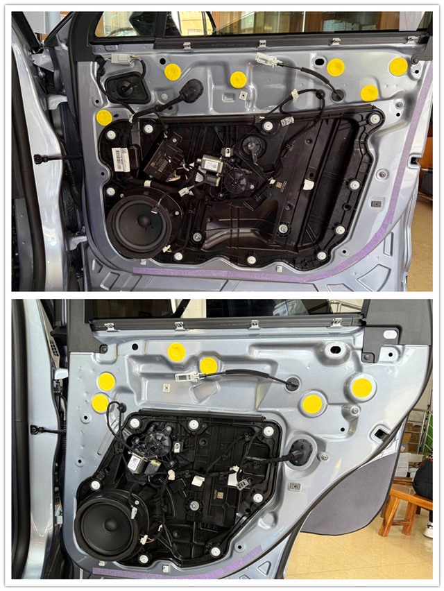 将前后门板表面的钣金进行清洁,确保隔音材料的粘贴效果更加牢固