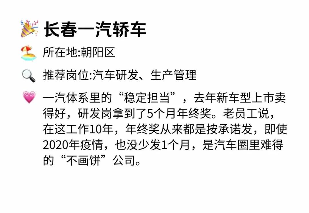 第二梯队的“稳健派”以传统车企和头部新势力为主。吉利年终能够发3个月工资,长安福特年前就能发放4.8-5.3倍月薪的年终奖;广汽和理想汽车平均年终奖约4个月月薪,理想绩效顶尖的员工甚至能拿到8个月;一汽轿车凭借去年新车型的热销,研发岗员工拿到了5个月年终奖,老员工直言“在这里10年,哪怕2020年疫情都没少发1个月,从不画饼”。