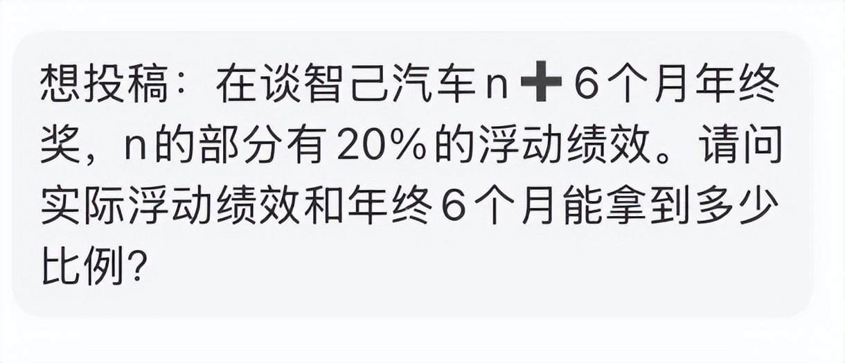 值得一提的是,智己汽车的“n+6个月”年终奖模式颇具特色,其中“n”代表员工工作年限(不满半年按0.5算,满半年不满一年按1算),n的部分还有20%的浮动绩效,工作年限越长的员工福利越丰厚。