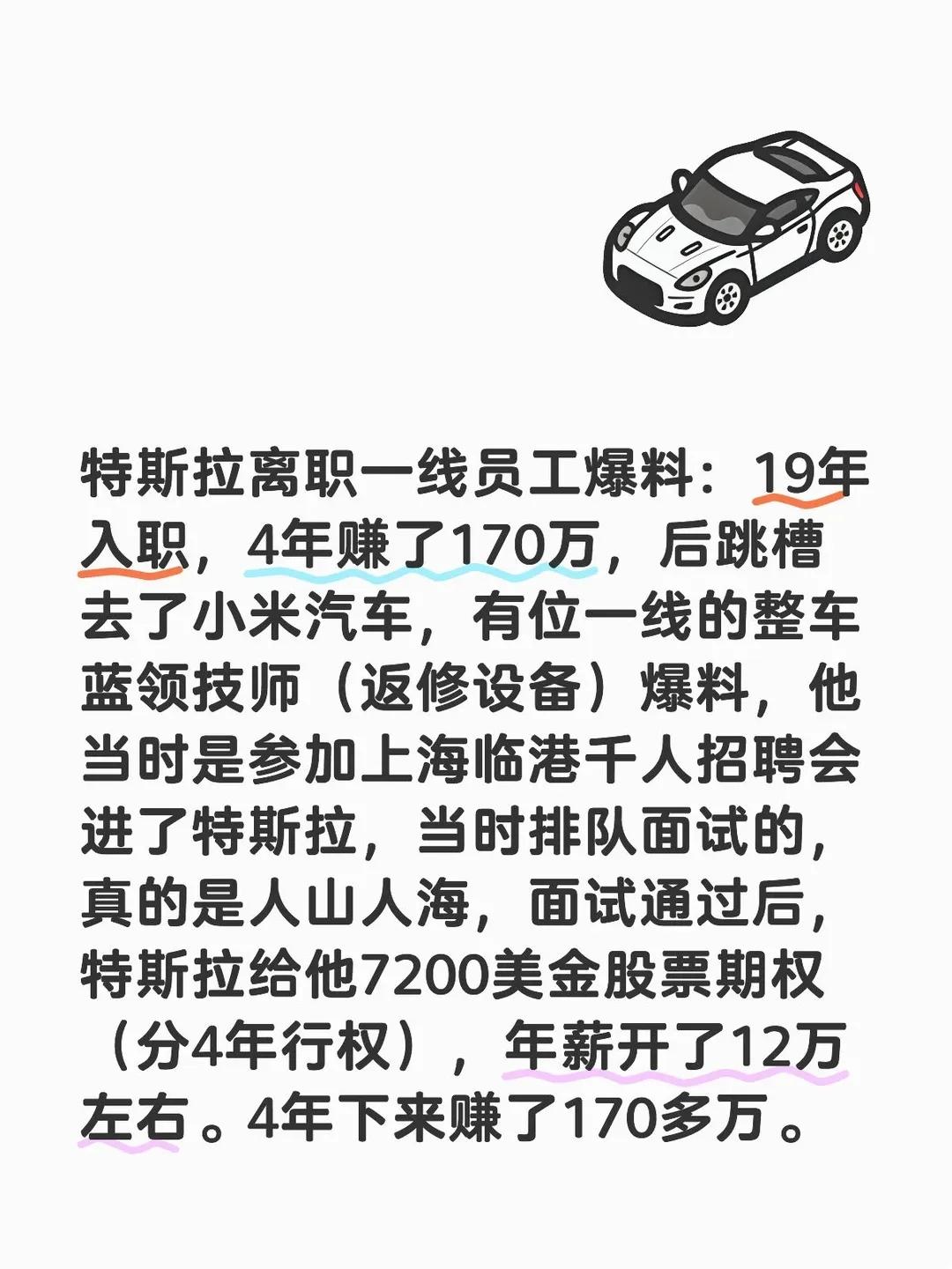先看"卷王"阵营,第一梯队的“土豪车企”中,特斯拉堪称标杆。其普通员工不仅能享受17薪(含年终奖和季度奖),基本工资7500-12000元,还配有六险二金、全家免费商业保险,节假日加班甚至能拿到1000-2000元/天的加班费,一线工人平均月收入接近1万元。小米汽车部也不甘示弱,集团整体年终奖系数约1.2倍,而汽车部凭借出色表现,年终奖可达平时的2-3倍,成了集团内的“香饽饽”。