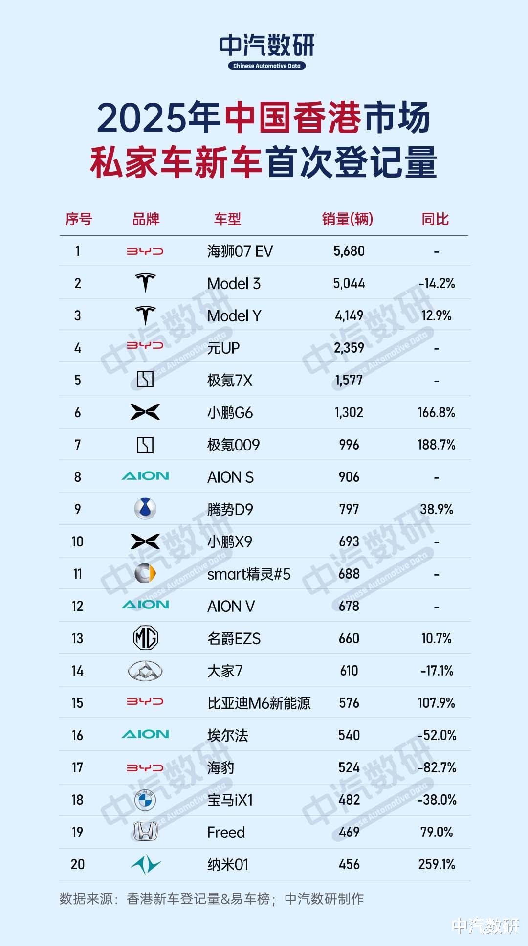品牌榜中,比亚迪以9,751辆的成绩反超特斯拉(9,193辆),成为香港市场销量最高的品牌。比亚迪依靠海狮07 EV、元UP等新品的精准定位,契合香港市场对“大空间、高性价比新能源车型”的需求。