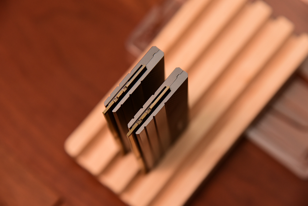 2毫米厚的散热片为钛灰色金属材质,外观上的蜂巢丝印栩栩如生,体现了对细节的精雕细琢。