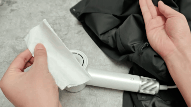 我尝试用吹风机的最大风力进行测试,当卫生纸有GaKior冲锋衣阻隔之后,一点风都吹不过来,防风效果拉满。