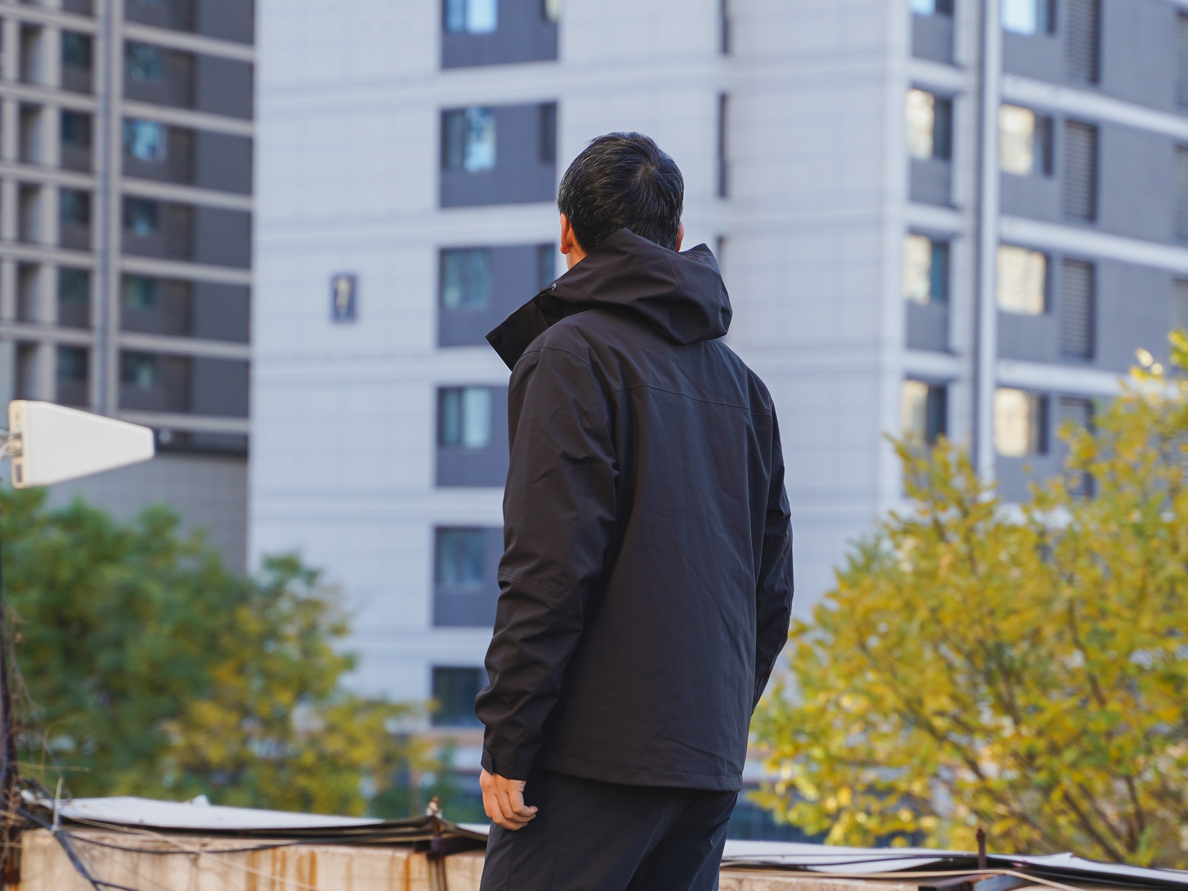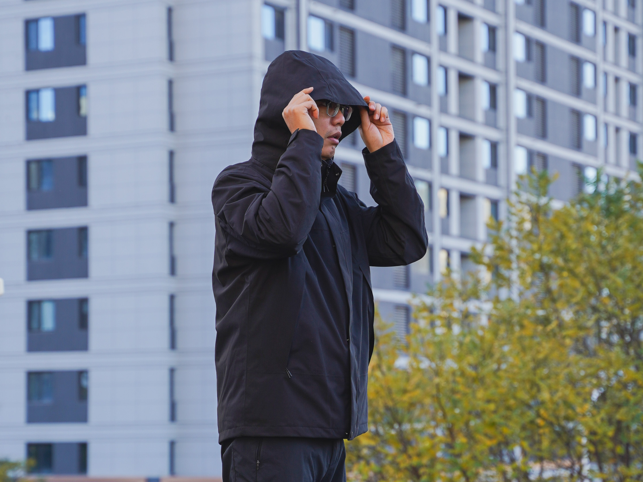传统冲锋衣普遍面料僵硬,日常运动过程中会影响肢体活动会有被束缚的感觉,但Gakior的外壳面料却非常柔软,面料相互摩擦也不会有明显的嚓嚓声,更难能可贵的是面料还有微微的弹力,日常穿着确实很舒服。