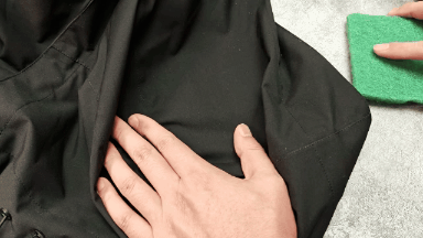 再来看耐磨性,使用百洁布在衣服上来回摩擦,竟然看不到一点摩擦痕迹,面料耐磨效果同样很强。