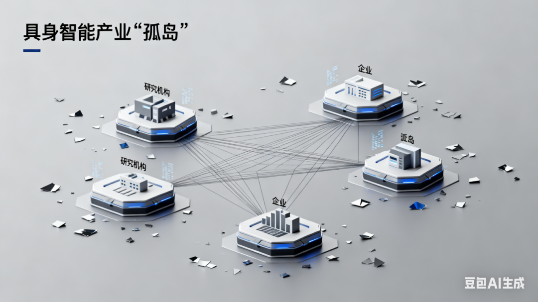 所谓“孤岛”,指的是在具身智能产业发展中,各研究机构、企业之间缺乏有效联动,数据难以共享,标准互不相认,技术路线碎片化,企业重复投入,产业链协同不足,成果难以互通。