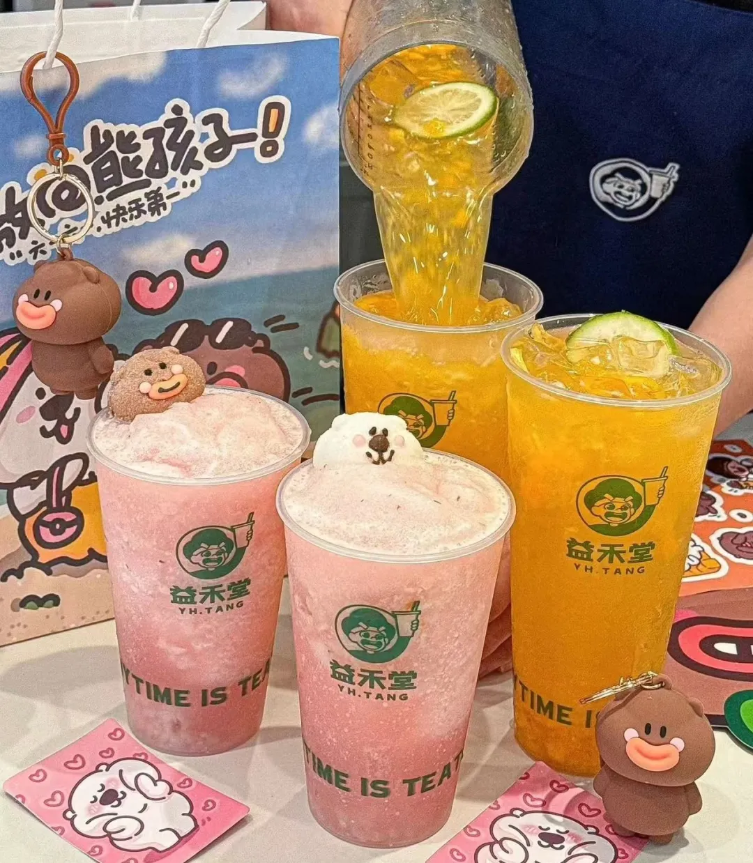 而为了能够更好地吸引这一群体,益禾堂不仅在产品上不断创新,更在品牌形象和营销策略上进行了年轻化的改造。从校园开学季的营销活动到与热门IP的联名合作,益禾堂始终保持着与年轻消费者的紧密互动,这种深入人心的品牌营销方式使得益禾堂在学生群体中拥有极高的知名度。