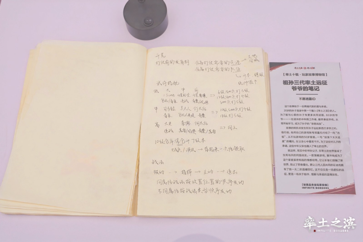这些藏品中,有一件祖孙三代率土远征的来自80岁老人认真手写的攻略,不仅让人感受到战友情谊,更是体现了一个好游戏对不同年龄玩家的穿透感染力!