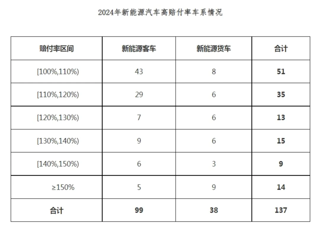保险业共承保车系2795个,其中赔付率超过100%的高赔付车系有137个。这意味着,“保一辆亏一辆”成为保险公司对高风险新能源汽车拒保或者提高保费的深层次原因。