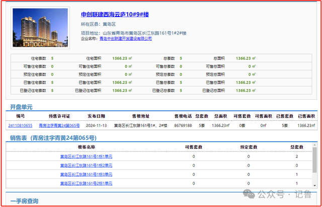 说 “卖了30套”,但咱去青岛网上房地产查了查,这项目的预售许可证是有,批准预售套数为5套,确实是全卖上了,当然也可能更新不及时,但现在的数据确实摆在这,具体卖了多少套、谁买了,不知道。