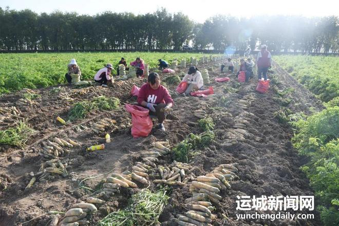 初冬时节,河底镇坡申村种植的200余亩麦田回茬胡萝卜正在收获期。11月10日,坡申村采挖机械在田间地头往来不停,村民们正在为外地客商分拣、装袋,一派繁忙的劳动景象。