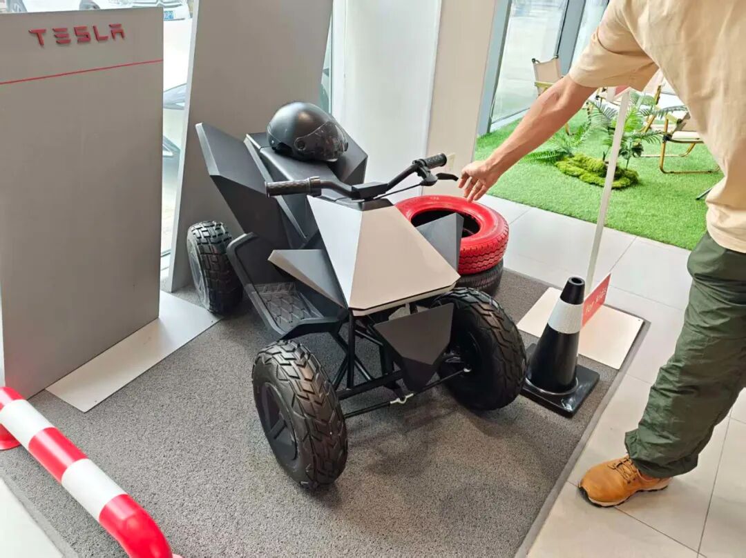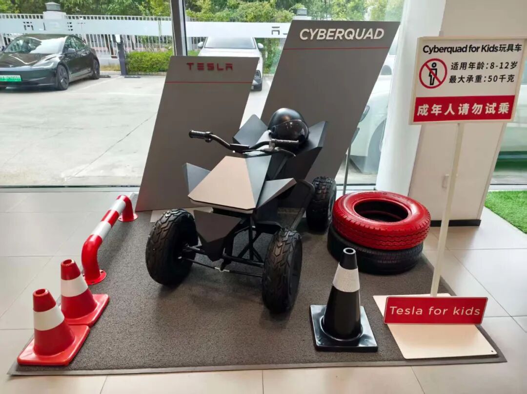 但我作为特斯拉车主,正好上周Model Y召回让我去店里一趟,我就看到这台特斯拉官方出的儿童四轮越野摩托,名叫Cyberquad。我立刻拍了拍脑门,咋把这玩意给忘了?
