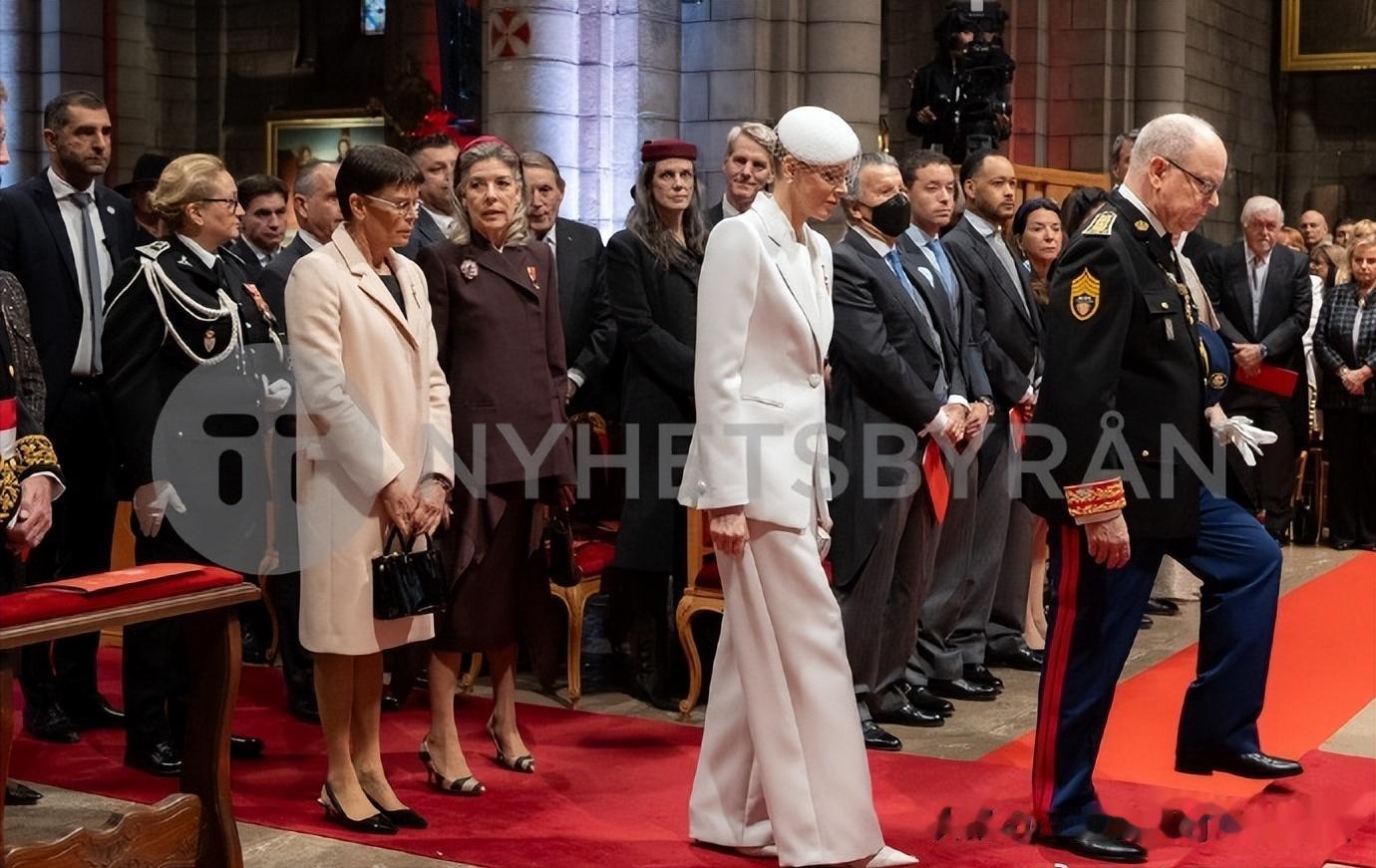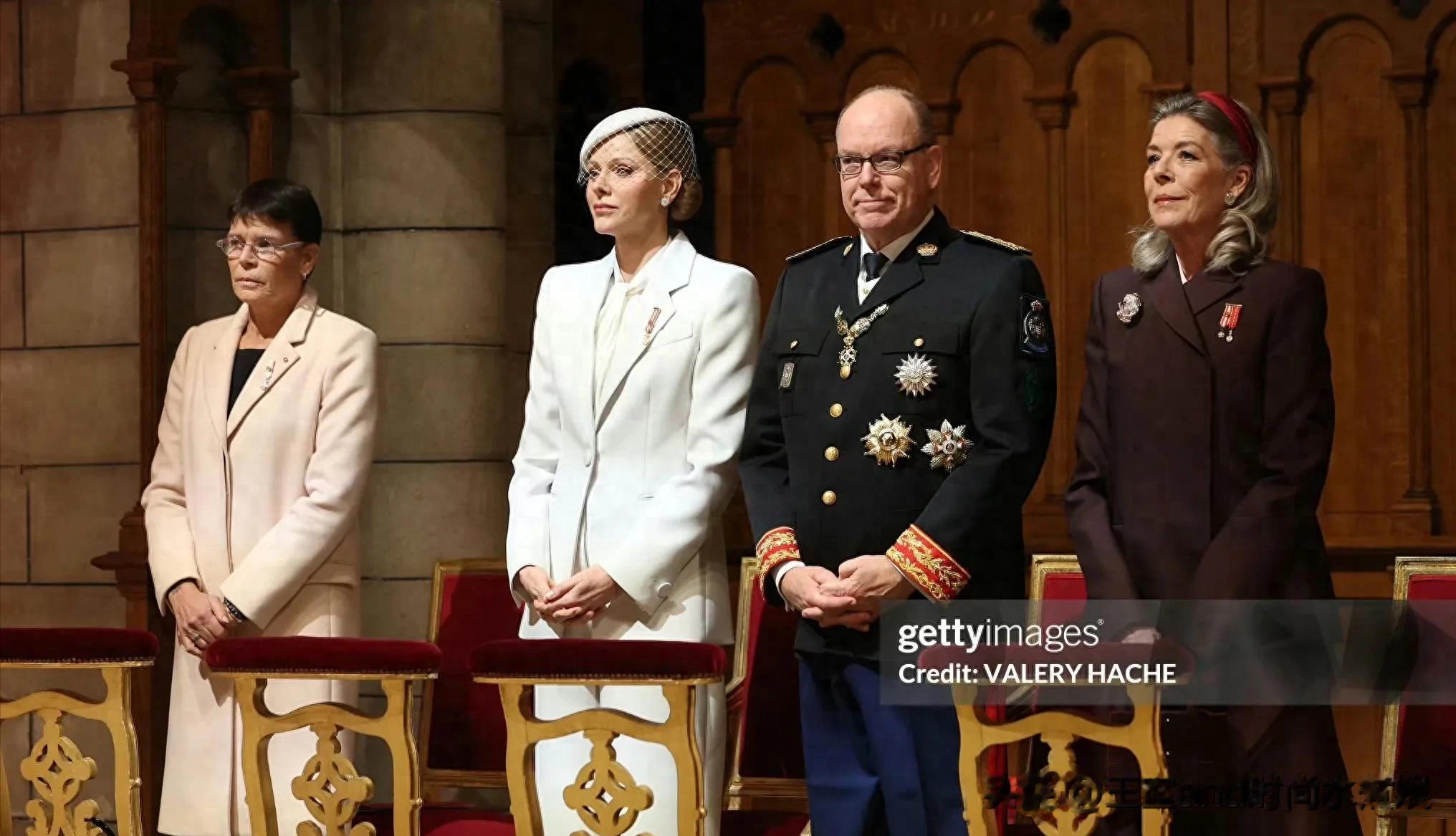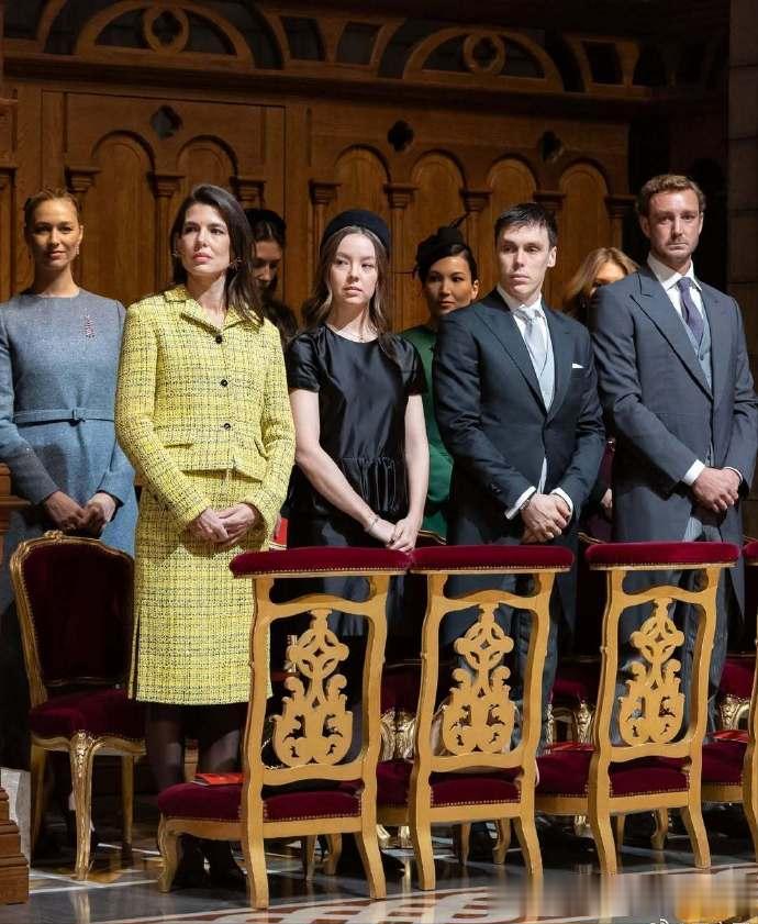 摩纳哥阿尔贝亲王、夏琳王妃一家四口,史蒂芬妮公主、卡洛琳公主,以及两位公主的子孙们也都纷纷亮相。