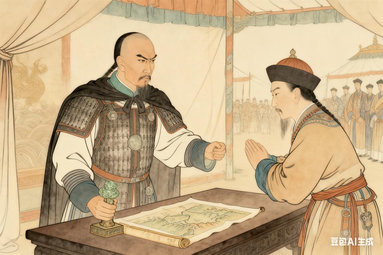 雍正二年的正月,西宁城外的雪下得正紧。年羹尧站在中军大帐前,玄色披风上落满了雪粒子,风一吹,就顺着领口往脖子里钻。他抬手掸了掸肩甲,指尖触到一块凹凸的痕迹 —— 那是去年在郭罗克平叛时,被叛军的弯刀划出来的,如今结了层薄薄的冰,摸上去像块冷硬的石头。帐内传来士兵翻动地图的窸窣声,他深吸一口气,冰冷的空气呛得肺里发疼,却也让他混沌了一夜的脑子清醒了些:罗卜藏丹津的主力就在前方五十里,这一战,只能赢。