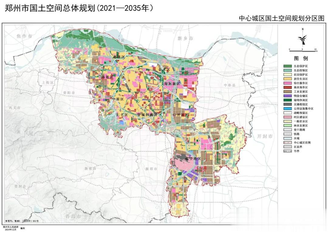 郑州市国土空间总体规划中心城区分区图 ©官网 仅供参考