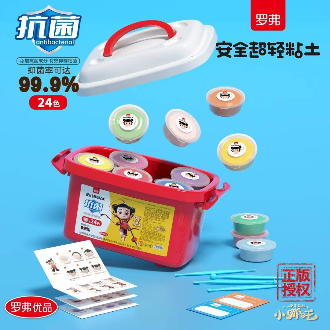 罗弗×《少年英雄小哪吒》联名无硼超轻粘土,采用红、白、黄三色设计,开箱即入哪吒神话宇宙。色彩丰富多样,12色,24色,36色任你选择,工具教程一应俱全,手把手带你捏出“少年英雄小哪吒”。