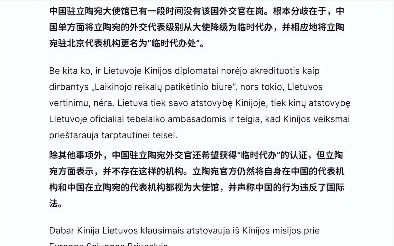 立陶宛愿再给中国一次机会,希望中方回应,恢复两国友好关系