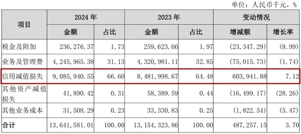 这些不良资产处置难度大、周期长,不仅吞噬了大量利润,还导致信用减值损失居高不下——2024年该行信用减值损失达90.86亿元,同比增加6.04亿元。