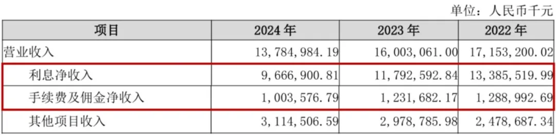 从收入端看,核心的利息净收入2024年降至96.67亿元,同比下滑18.03%,净息差仅1.35%,低于商业银行1.52%的行业平均水平;手续费及佣金净收入10.04亿元,同比下滑18.52%,信用卡业务收缩成为主要拖累因素。