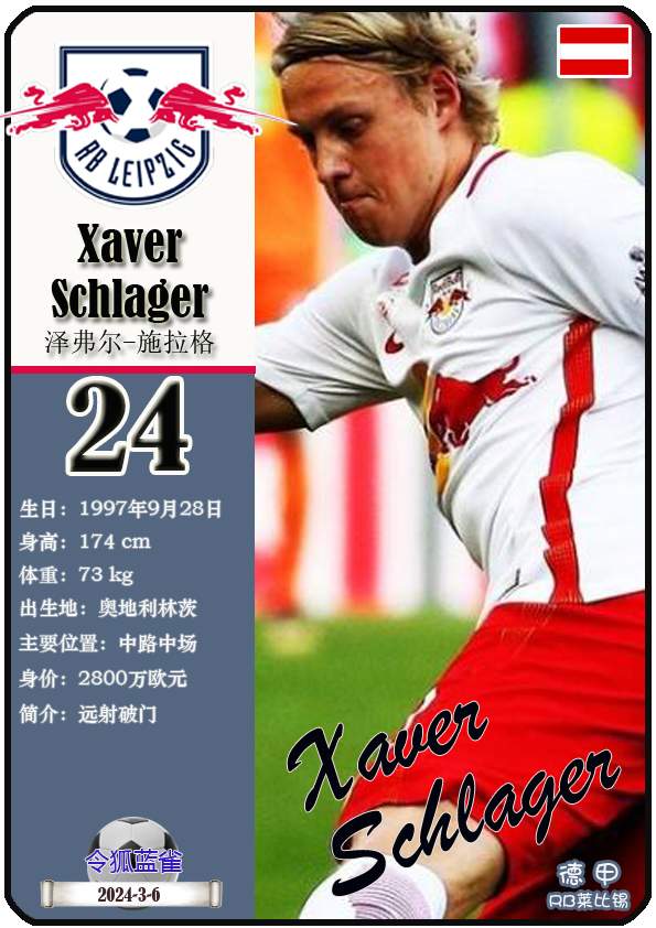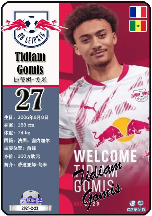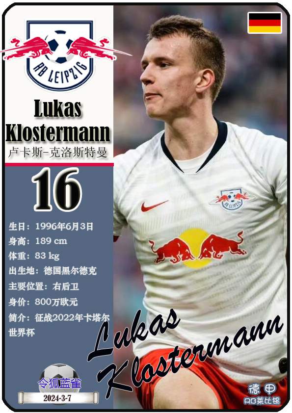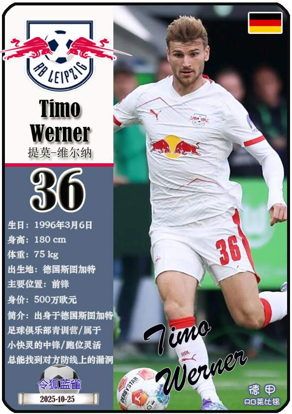 德甲RB莱比锡足球俱乐部成立于2009年5月19日,距今已有16年历史。截至2025年10月25日,球队主教练是奥勒-维尔纳,队内拥有球员约翰-巴卡约科、安东尼奥-努萨、克里斯托弗-鲍姆加特纳等。本期以球星卡的形式展示目前德甲RB莱比锡足球俱乐部的25名球员(按球衣号码排序):