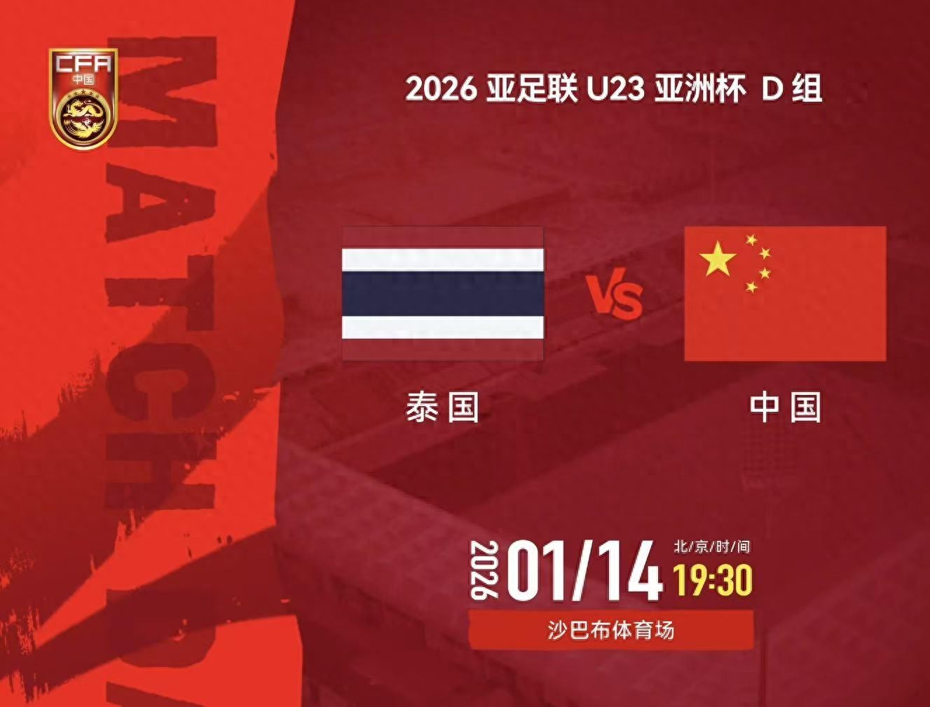 当U23男足的赛程表定格在"1月14日19:30 中国VS泰国 打平即出线"时,我这颗八卦的心瞬间提到了嗓子眼——这哪是比赛预告,分明是中国足球祖传的"死亡flag"又双叒叕立起来了啊!"打平即出线"这五个字,对中国男足来说就是比"你是个好人"还伤人的魔咒,比娱乐圈顶流塌房还让人猝不及防的玄学陷阱!