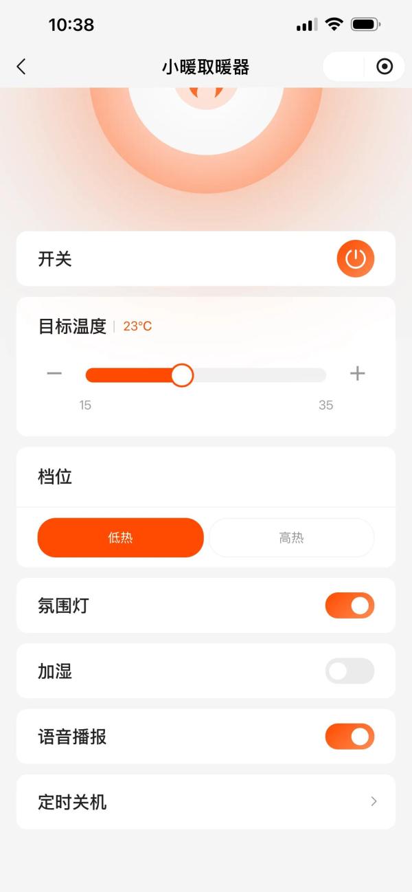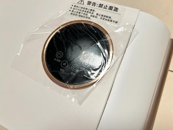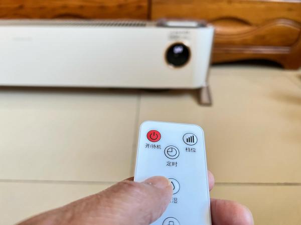 宫菱取暖器正面右侧有一圆形显示面板,可以触摸控制加热、加湿开关,可以设定加热器的档位、温度、时间。取暖器除了高低两个档位,还支持15-35℃的温度微调,精准舒适的调节加热效果。另外,还随机配备了一个遥控器,用于远距离控制加热器。对宫菱取暖器常用功能的控制有四种:触摸屏控制、遥控器控制、语音控制、手机远距离控制。使用了一段时间后,发现触摸屏我几乎没有用过,都是通过遥控器或语音指令来实现的。也许是因为我有点肥胖,蹲不下来使用触摸屏吧,哈哈!不过感觉在很多时候,语音控制和遥控器都很好用,也不用再劳神蹲下用触摸屏了。