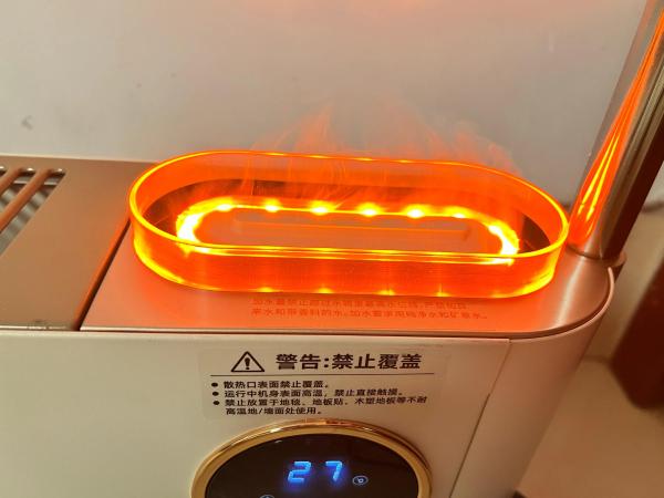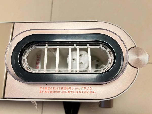 取暖器右侧圆形显示面板上方是加湿器出口。不过需要注意的是千万不要加自来水,也不要加精油一类的东西,最好用纯净水或者矿泉水,严格按要求操作,避免以后出现不必要的麻烦。