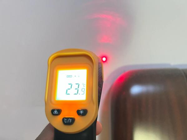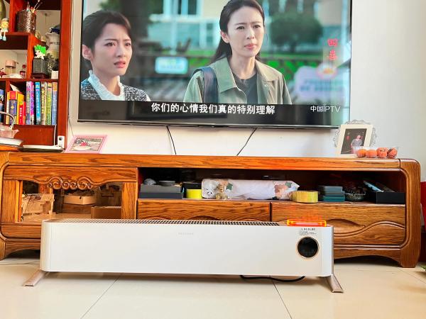 值得说明的是,在全屋循环温度及均匀度方面,宫菱SAEX的表现也相当出色。开机5分钟,整个屋子就能明显感觉到温暖,温度上升明显;开机20分钟后,我分别测试了屋内不同角落的温度,温度分别为24.1℃、23.9 ℃、24.1℃,室内无论距离宫菱SAEX远近都能明显感受到温暖。可能得益于宫菱SAEX机身顶部和底部的格栅,底端进凉风,顶端出热气,释放出4-14um的远红外光波,形成一道像瀑布一样又宽又广的热幕流动,形成360度立体循环冷热空气,全屋均匀受热,无取暖盲区,犹如阳光般的取暖效果,比普通暖风机暖意更为均匀柔和,取暖更舒适!