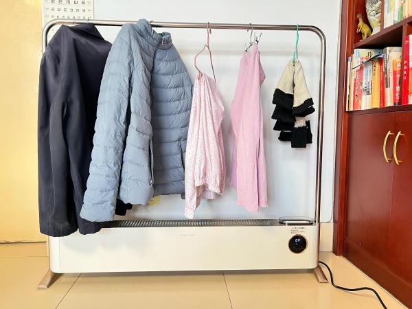 宫菱取暖器随机赠送了一个可拆卸式晾衣支架。先把取暖器边缘的盖板轻轻撬开,然后将组合好的晾衣架分别插入两侧即可。冬天因为气温低,每天洗过的衣服不容易干,有时衣物因为来不及晾干还会发霉有味。有了它可以将衣物晾在这个宽大的晾衣架上,相当于将衣物放在了烘干机上,很快就能烘干。这个巧妙设计节省了空间,还不用再额外购买烘干机,既经济又环保,无论轻薄衣物还是厚重的湿毛巾,都能在温暖的气流中迅速变干。这个冬天,再也不用为干衣服烦恼了,而且拿起衣服穿在身上还暖暖的。