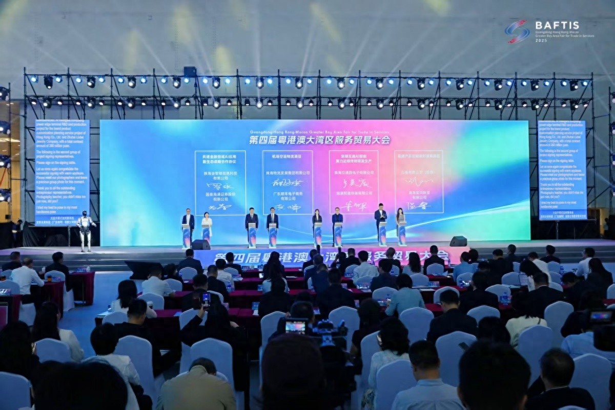 开幕式上,11个国际合作重大项目集中签约,涵盖新加坡无人机设备采购、加纳全国道路监控系统改造等领域,签约总额达11.05亿元。这些项目均通过市场化渠道对接完成,展现了大湾区服务贸易在国际市场上的竞争力。