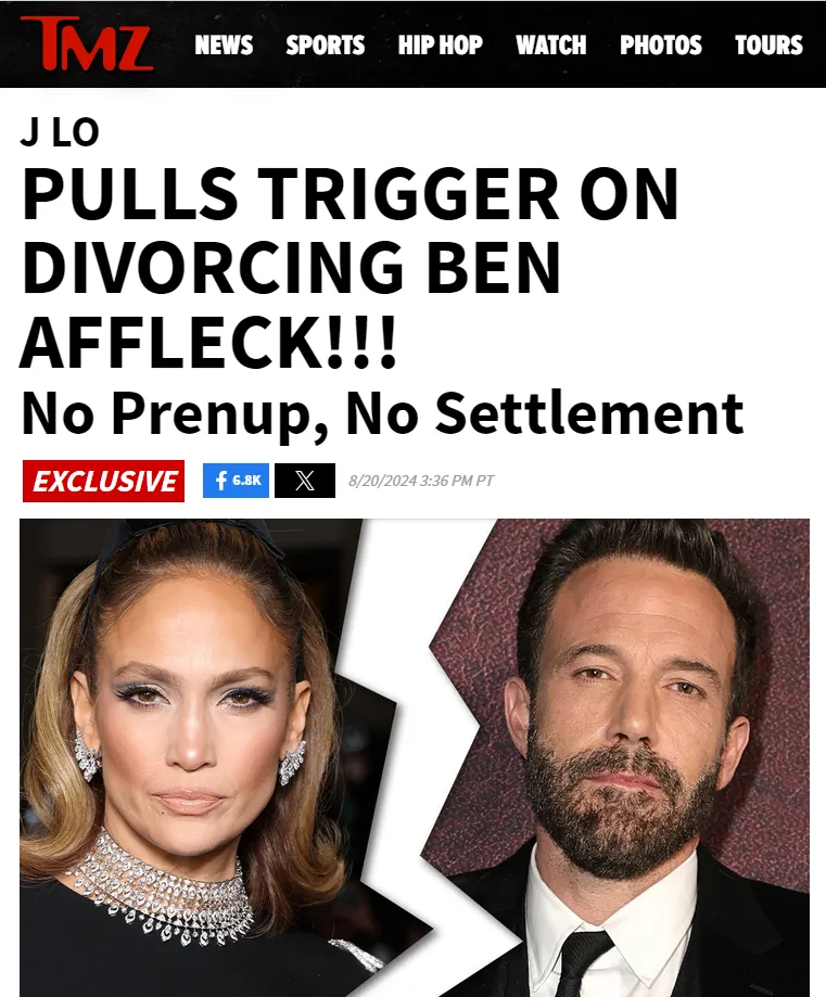 8月20日,好莱坞巨星Jennifer·Lopez(詹妮弗·洛佩兹)正式向洛杉矶高级法院递交了与Ben·Affleck(本·阿弗莱克)的离婚申请。