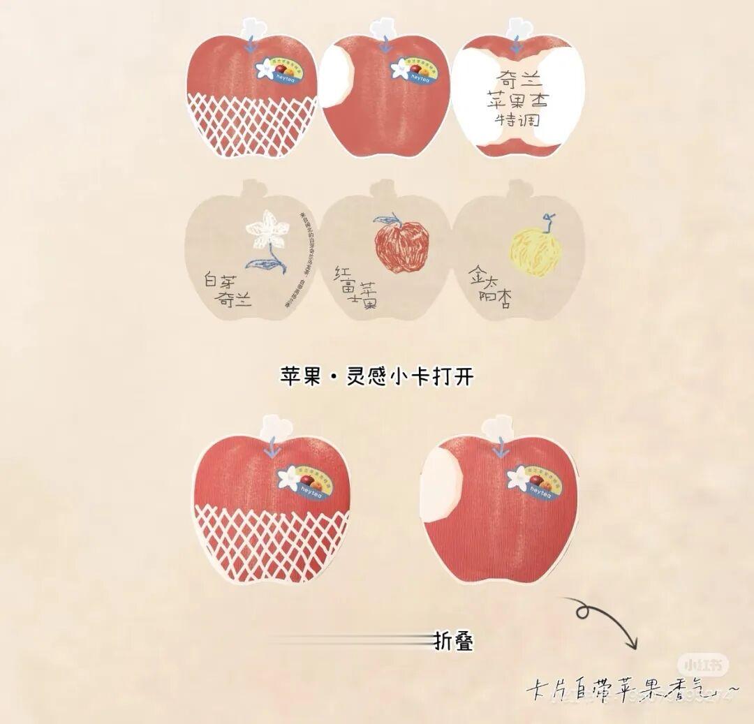 奇兰苹果杏特调的“三折叠”小卡,自带苹果香气。