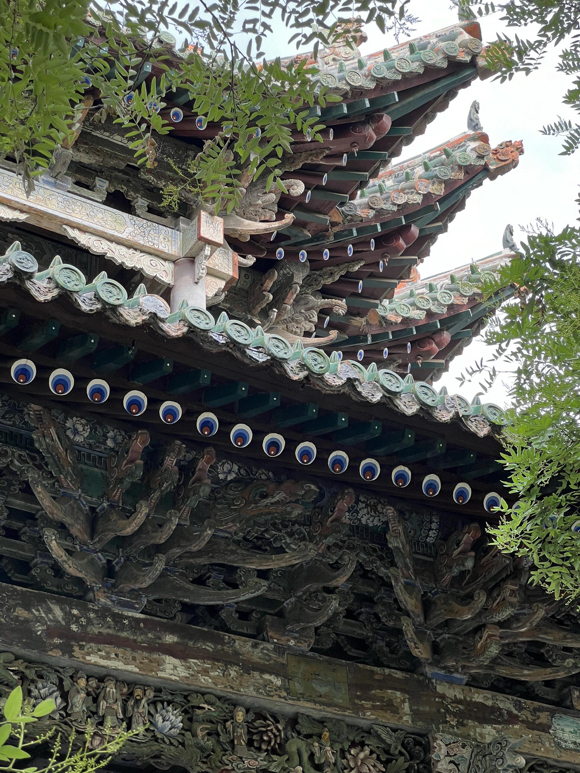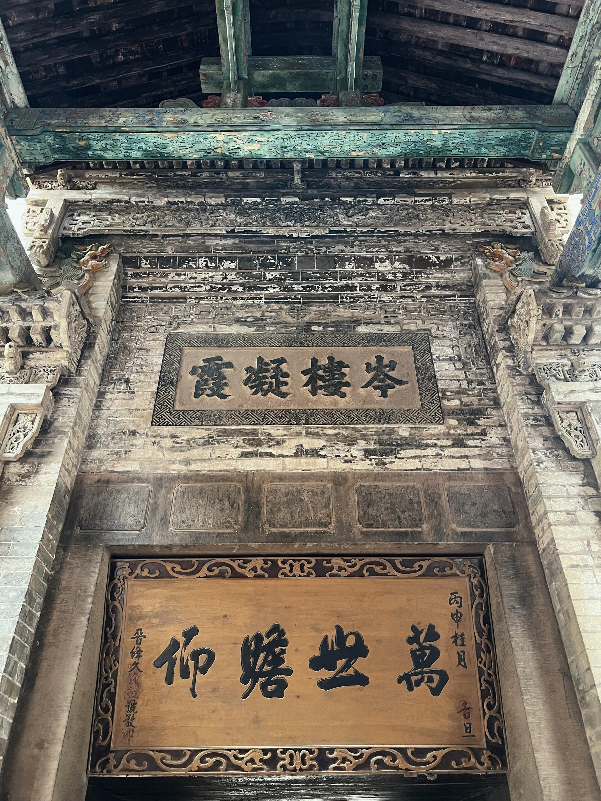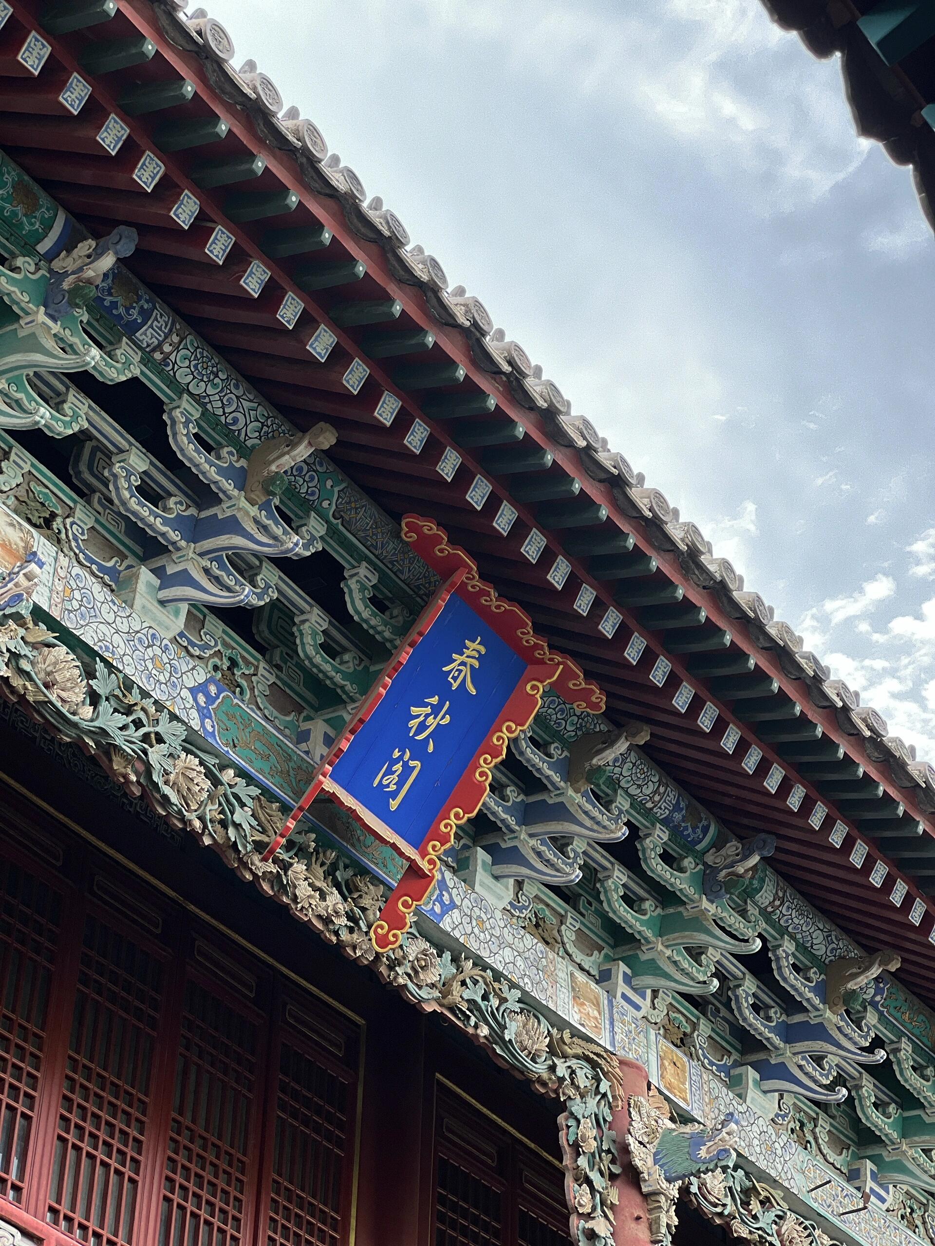 站在山门前,抬头可见门楣上「山陕会馆」四个大字,两侧是「履中蹈和」「义气相投」的砖雕匾额。这八个字,道尽了晋商秦贾的处世哲学——以「义」为基,以「和」为贵,在商海浮沉中坚守诚信为本。跨过一尺多高的门槛,仿佛穿越进了清代的商业江湖:戏楼的藻井还在回荡着百年前的梆子腔,看楼的栏杆上似乎还留着商人凭栏观戏的体温,关帝大殿的烛台上,仿佛还飘着缕缕青烟,诉说着商人们对「关圣帝君」的敬畏与期许。