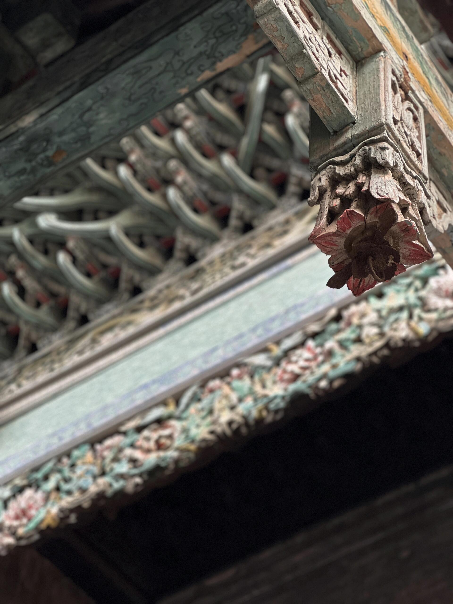 这座耗时66年、耗银六万两的建筑群,最终在嘉庆十四年(1809年)宣告落成。整座会馆坐西朝东,面朝运河,寓意「迎东来财」。从山门到春秋阁,沿中轴线依次排列着过楼、戏楼、钟鼓二楼、南北看楼、关帝大殿等建筑,160余间亭台楼阁鳞次栉比,既有北方建筑的雄浑大气,又融入了江南园林的精巧雅致。最妙的是,会馆巧妙利用地势高差,通过台阶、回廊将不同功能的建筑串联起来,形成了「步步升高」的空间序列,暗合「生意兴隆通四海」的美好寓意。