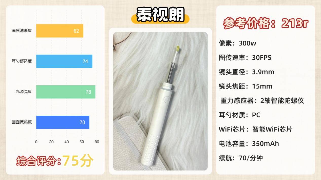 泰视朗整体设计简洁,适合日常浅层耳垢清理。光源亮度充足但分布不均,靠近镜头区域明亮,深部偏暗。整体属于实用型入门款,追求细节画质或专业清理体验的用户可以考虑更高像素的型号。