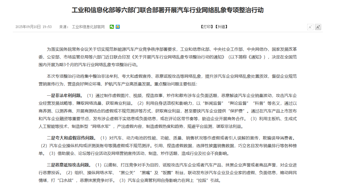 六部门开展汽车行业网络乱象整治,小鹏、极氪等车企相继发文!