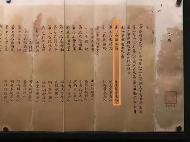 清道光二十七年(1847),张之万名科状元及第。张之万是张之洞族兄,先后任兵部尚书、刑部尚书、吏部尚书,最后官至军机大臣,一品大学士,位极人臣。与张之万同科的还有不少大名人,晚清誉满天下、谤满天下的大人物李鸿章名列二甲36名。中国近代海军、航运的奠基人之一,官至两江总督兼南洋大臣的林则徐女婿沈葆桢名列二甲39名。中国首任驻外大使,先后任驻英国、法国公使,堪称中国职业外交家先驱的郭嵩焘名列二甲60名。历任浙江巡抚、闽浙总督、两江总督的马新贻排在三甲第六名。由于这一科人才济济,所以,被称为大清朝第一名榜,也是历代科举史上的第三大名榜。