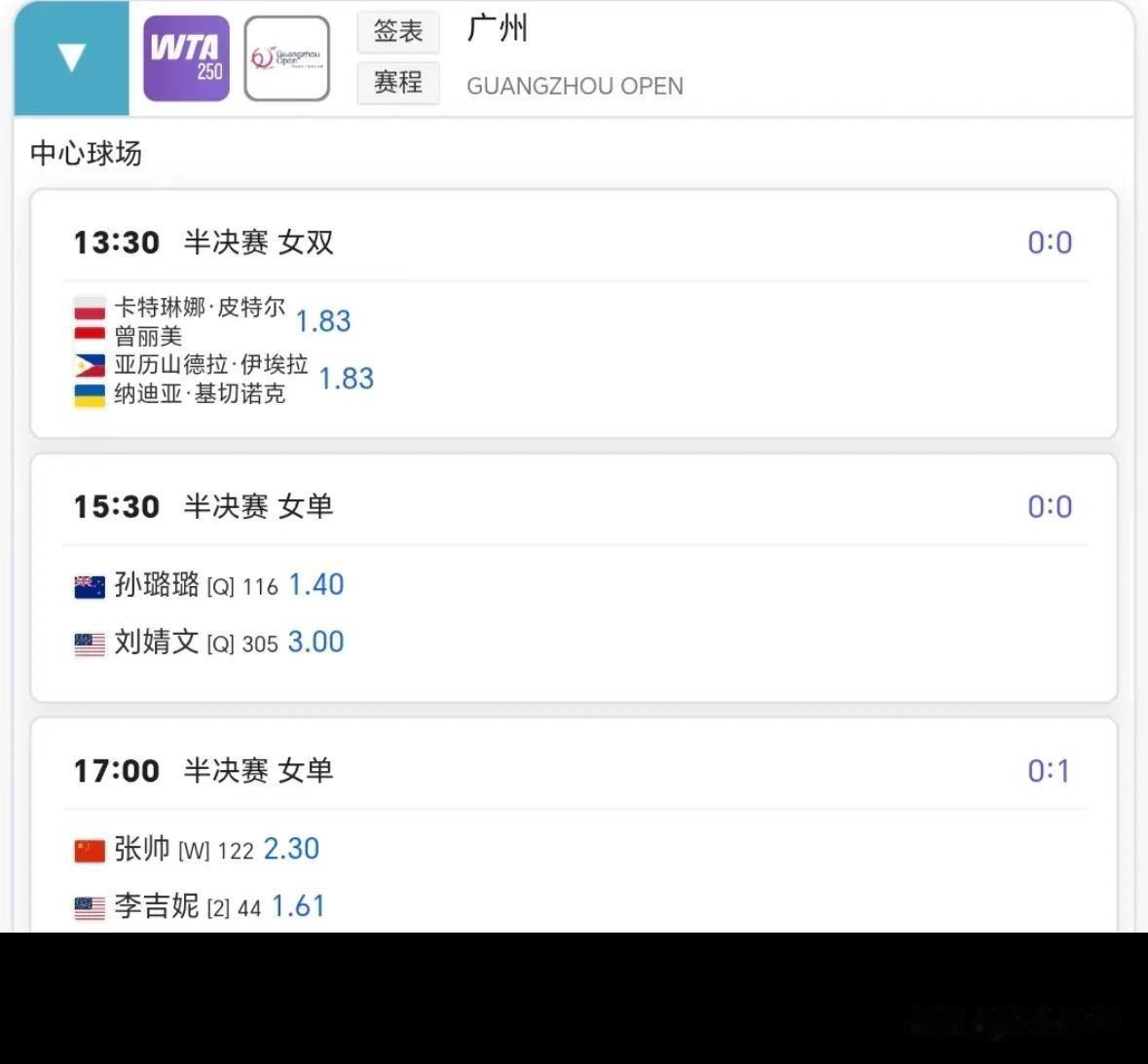WTA250广网女单半决赛第一场比赛,资格赛选手新西兰孙璐璐vs资格赛选手美国刘婧文!两人职业生涯首次交手!首盘,刘婧文先发被破发0-1,孙璐璐连续保发➕破发、发胜保发6-0赢下!