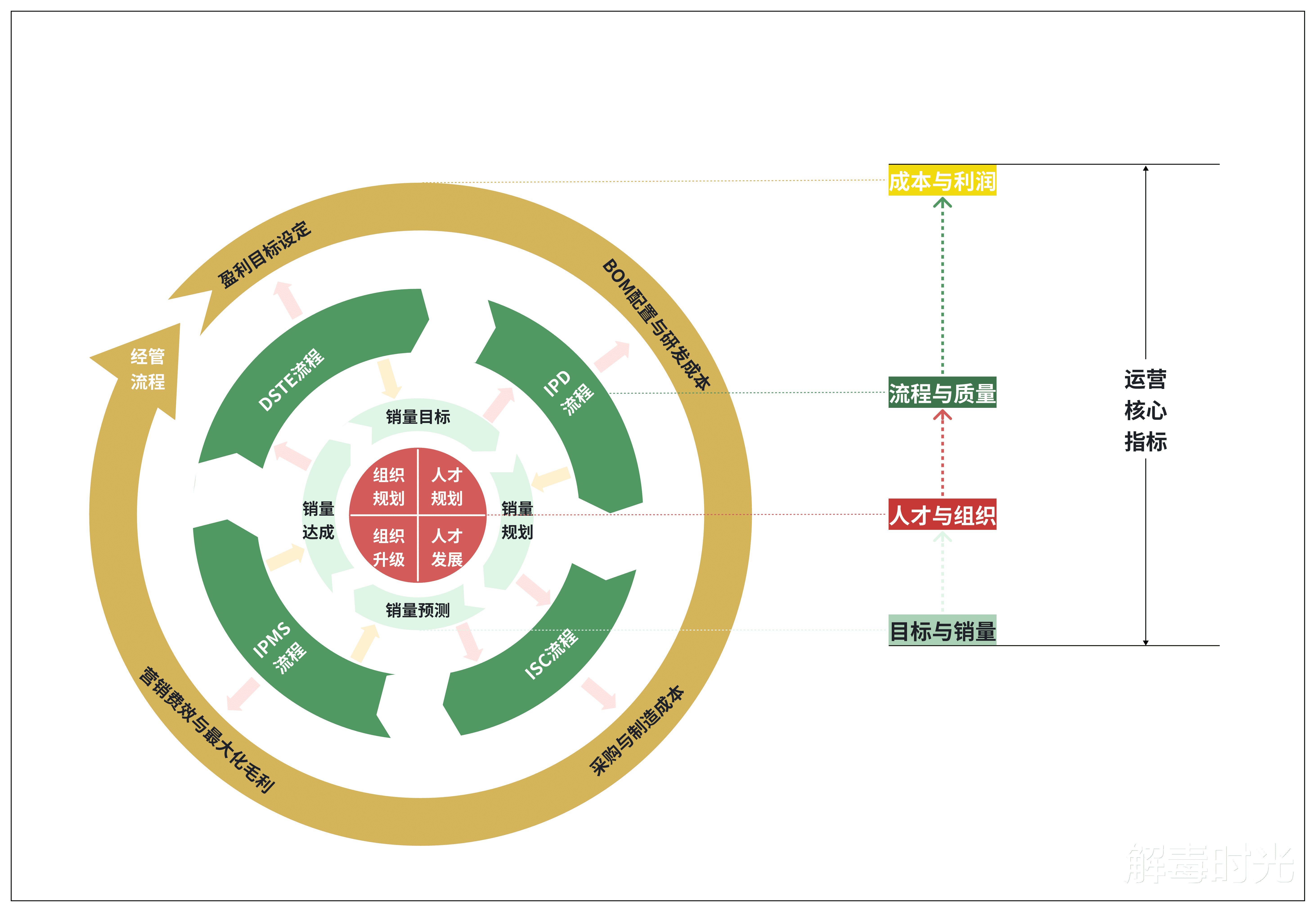 所以造就“华为神话”的不是IPD,反而是华为的成功造就了IPD的神话。当我们打碎掉这个有色眼镜之后,再回看车企纷纷建设流程这件事,用第一性原理来解读背后的关键——管理体系已经落后的车企,是否能通过流程再造的方式,聚焦以销量为核心的目标,并由此来推动人才与组织的建设,使之能够更好的执行流程和确保质量,最终在保证成本与利润的前提下,使得企业更具竞争优势并持续的向前发展。