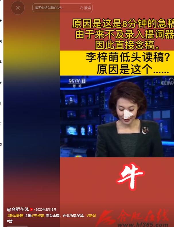 报道说:李梓萌读的这份稿件是一篇急稿,甚至急到还没有来得及把稿件录到提词器里。