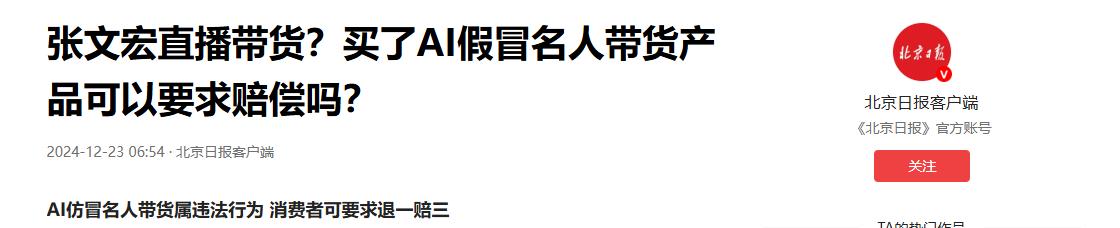 结果不法分子偷偷用 AI 模仿了她的形象和声音,拿去骗消费者买东西。