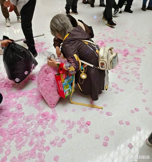 大家不用担心这场花瓣雨落下后,地上会留下大量的垃圾为保洁带来负担,开拓者可是很有环保意识,纷纷敞开垃圾袋在地上捡起了落下的花瓣,自发帮阿姨们打扫地板,这人设完全不OOC嘛!