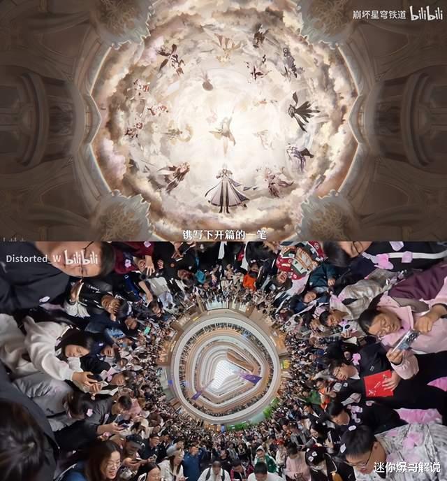 大量的玩家聚集在中庭1楼,见证了这场绝美的花瓣雨落下,这大概就是昔涟口中“11月12日会把天空都染成粉色”的预言吧!有玩家尝试为现在的大伙拍照,还真拍出了黄金裔的穹顶PV图!