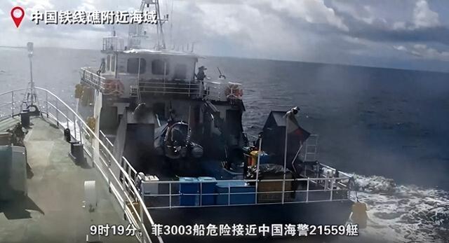 对于这一说法中国海警给出了现场视频。视频画面显示菲方3003号船在中国海警多次警告的情况下依旧没有停止侵权行为,对着中国海警的21559舰冲过来,