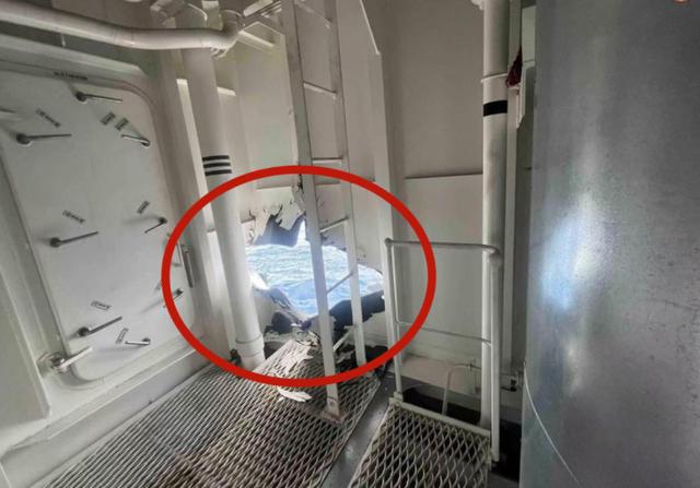 最后两艘船发生了碰撞,最终撞在了21559舰的左舷中段,中方舰艇护栏产生变形,菲方舰艇也出现损坏,并且在中国海警水炮射击过程中菲方舰艇烟囱也出现了变形。